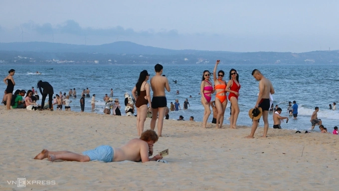 Du khách thư giãn trên bãi biển Mũi Né tháng 7/2025. Ảnh: Việt Quốc