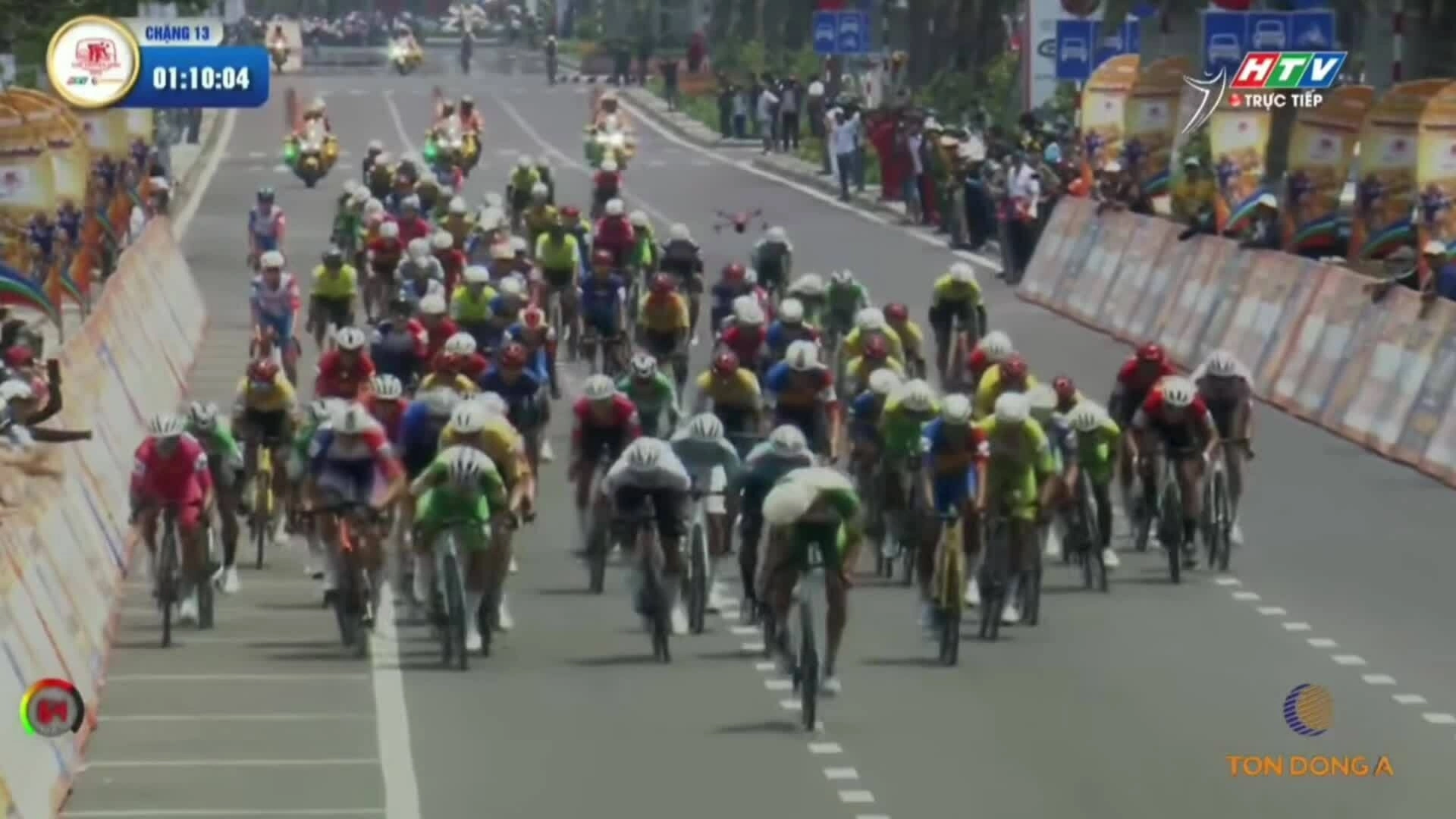 Trần Clément Em (số đeo 52) về nhất chặng 13 cuộc đua xe đạp xuyên Việt tranh Cup Truyền hình HTV 2026,sáng 15/4. Ảnh: Hồng Phương