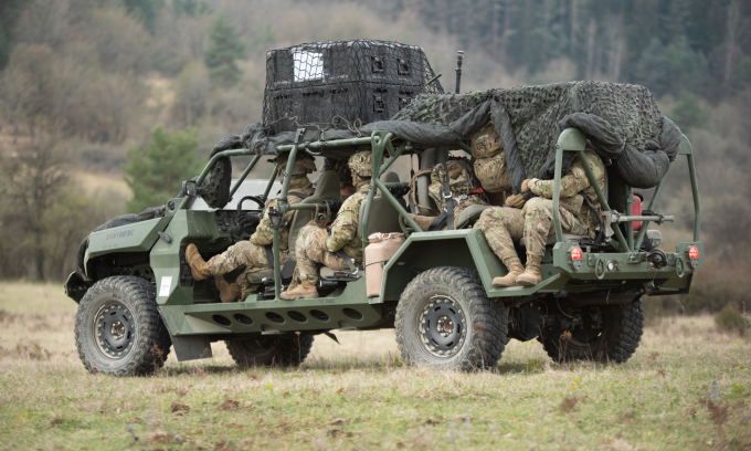 Lính Mỹ ngồi trên xe quân sự M1301 tại thao trường ở Đức hồi năm 2025. Ảnh: US Army