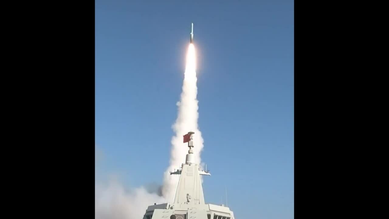 Trung Quốc công bố video phóng thử tên lửa diệt hạm siêu vượt âm YJ-20 từ tàu khu trục tàng hình Type 055, đánh dấu lần đầu đăng hình ảnh này.